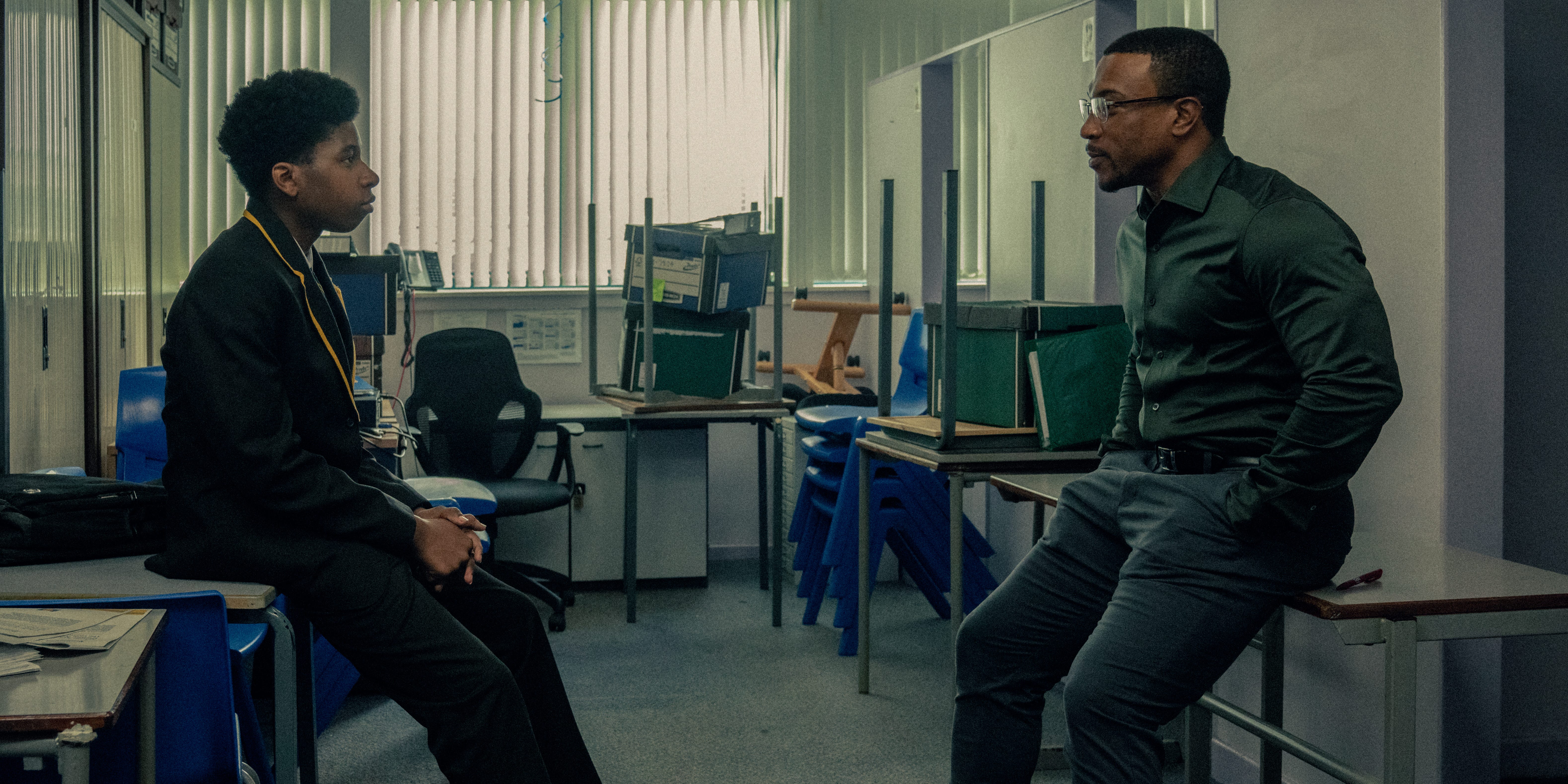 Bascombe is at the local high school, speaking to Katie’s classmates about what might have led to her murder, when his teenage son Adam (Amari Bacchus) pulls him aside to explain the coded emojis Katie used in messages on Jamie’s Instagram account. His father is baffled by the way young people communicate with each other.