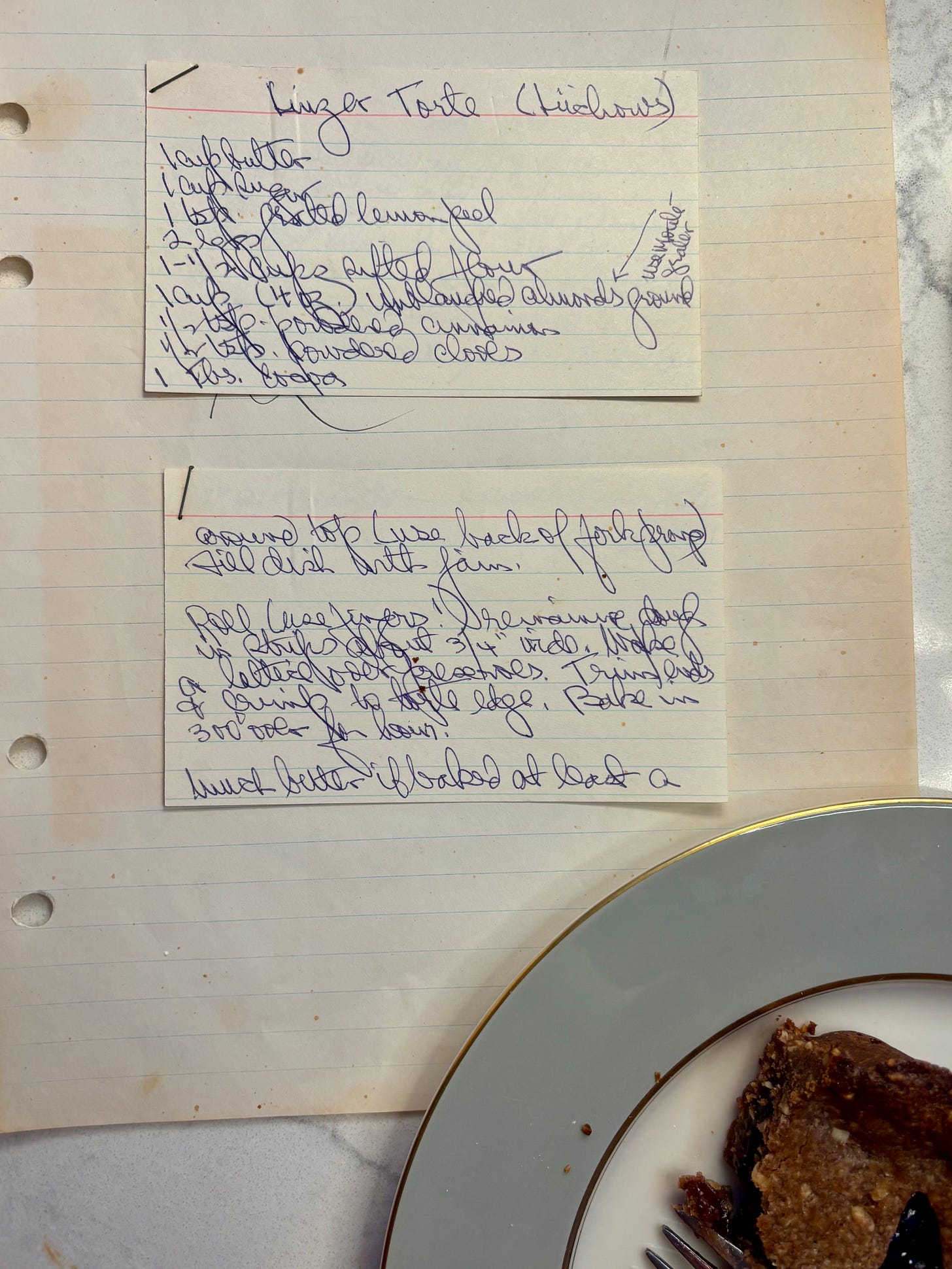 As I was looking through my mother’s collection of recipes, I came across the section marked with my father’s favorites, many of which were written in the odd, elegant Edwardian handwriting of my grandmother, and that included a strawberry tart, some delicious rolled pancakes called palatschinken, and a recipe for a Linzertorte c/o of Lüchow’s, New York’s most famous German restaurant, which ladled out sauerbraten and schnitzel from 1882 to 1986.