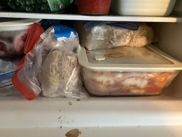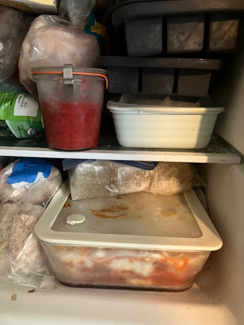 So I prepped. I made and froze dumplings, pupusas, empanadas, any kind of food I could imagine eating with one hand while holding a baby with the other. I filled any empty pockets of space with frozen chicken and beef bone broth, bolognese sauce, tomato sauce. Shelves and shelves of sustenance.