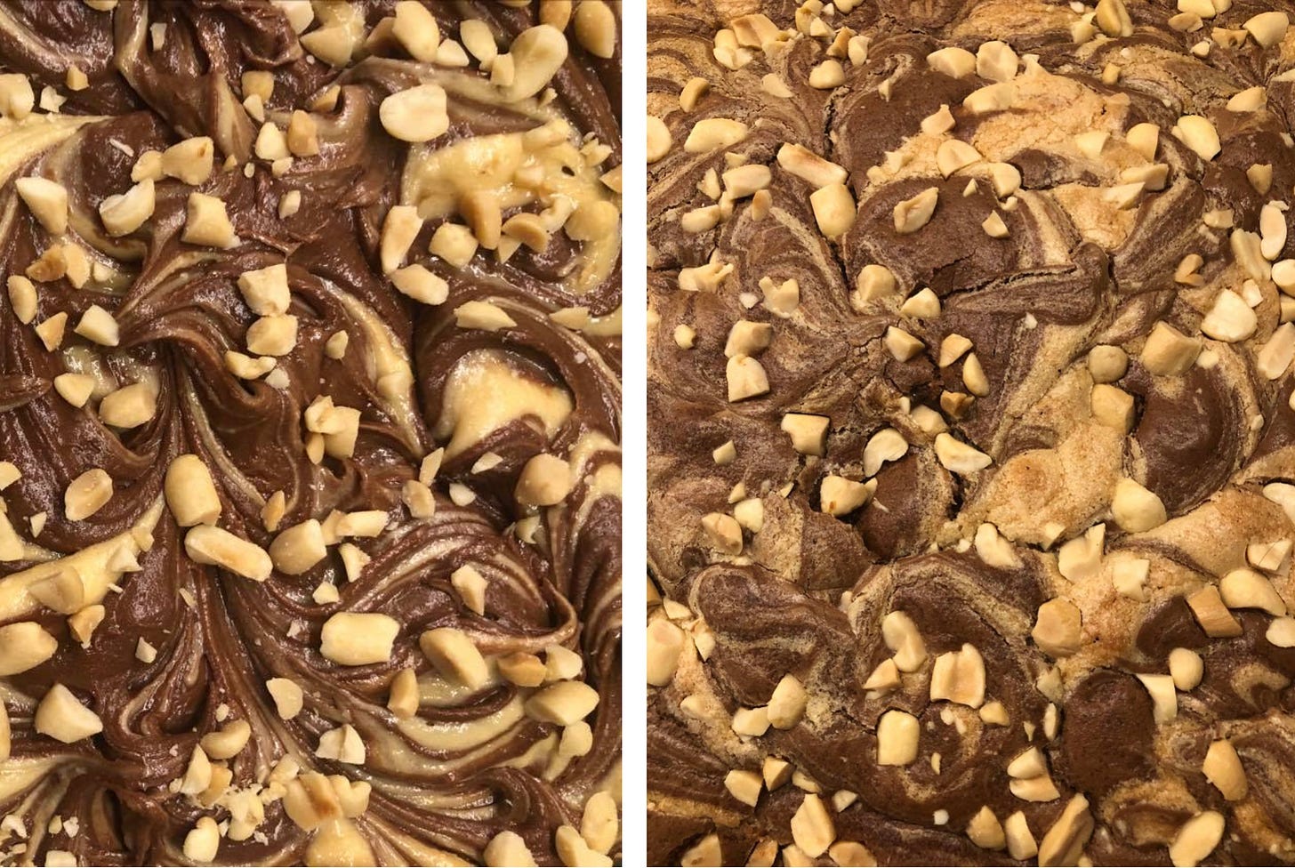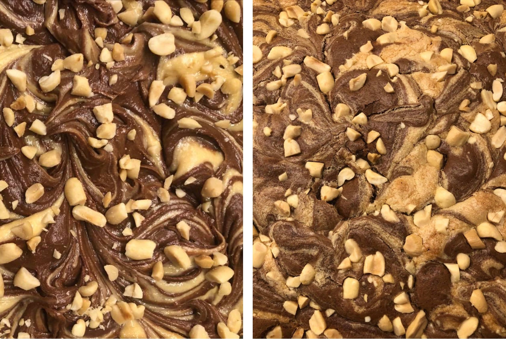 Beat the peanut butter into this smaller third portion of batter. Beat the melted chocolate into the larger ⅔ portion of batter.