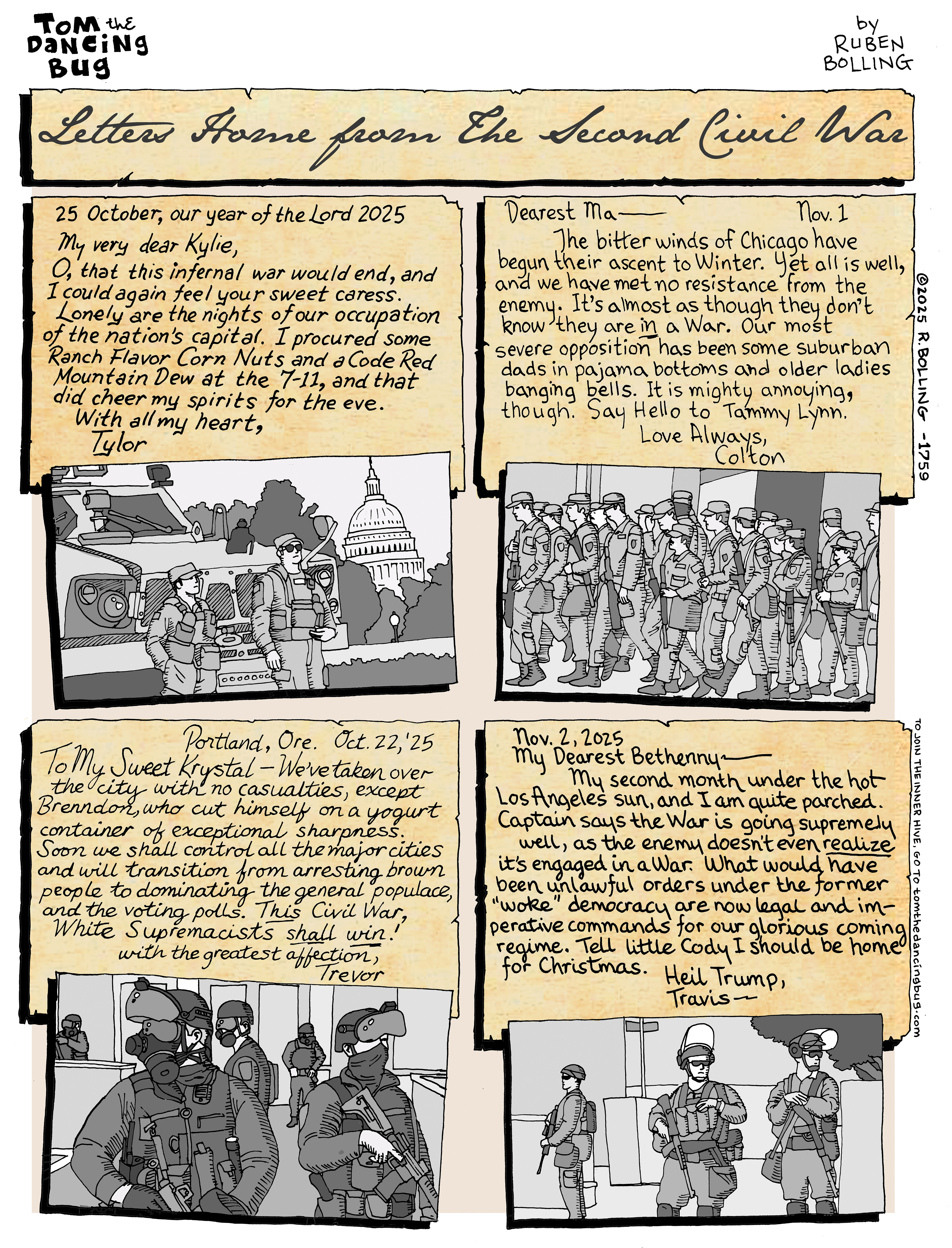 Follow Ruben Bolling on Substack here; Join Tom the Dancing Bug’s Inner Hive here; and here is the Tom the Dancing Bug website, with information about the new book, “It’s the Great Storm, Tom the Dancing Bug!“