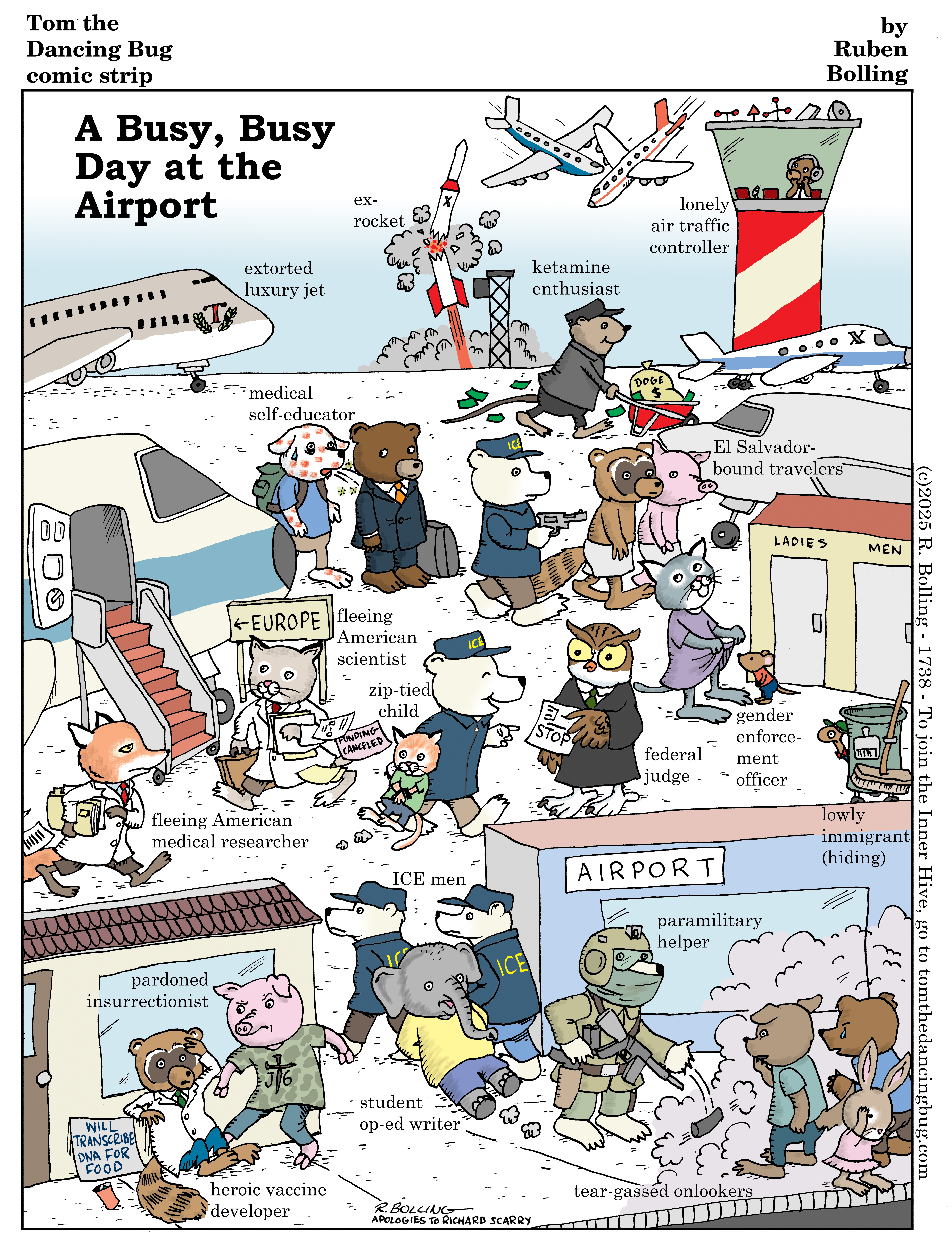 Follow Ruben Bolling on Substack here; Join Tom the Dancing Bug’s Inner Hive here; and here is the Tom the Dancing Bug website, with information about the new book, “It’s the Great Storm, Tom the Dancing Bug!"