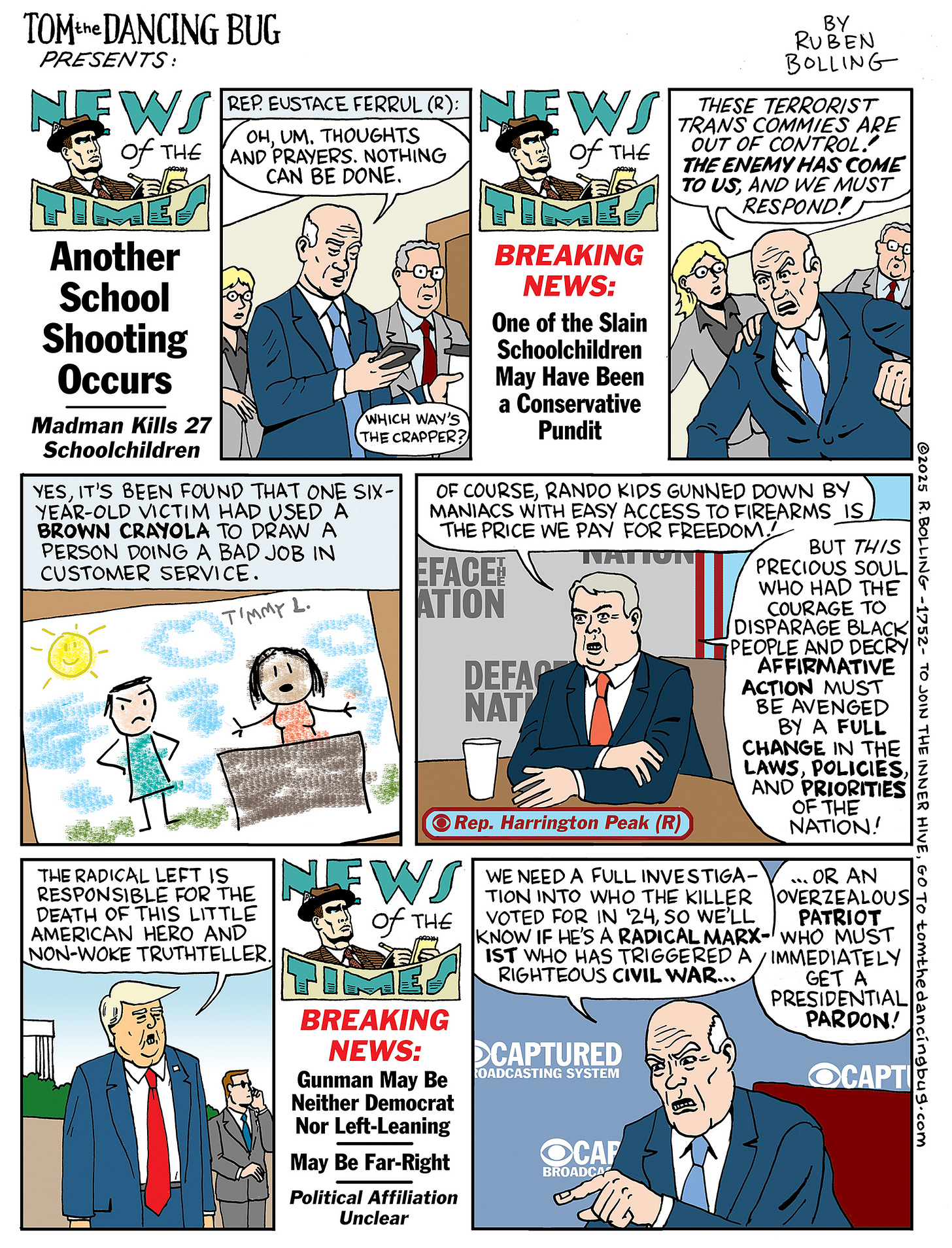Follow Ruben Bolling on Substack here; Join Tom the Dancing Bug’s Inner Hive here; and here is the Tom the Dancing Bug website, with information about the new book, “It’s the Great Storm, Tom the Dancing Bug!"