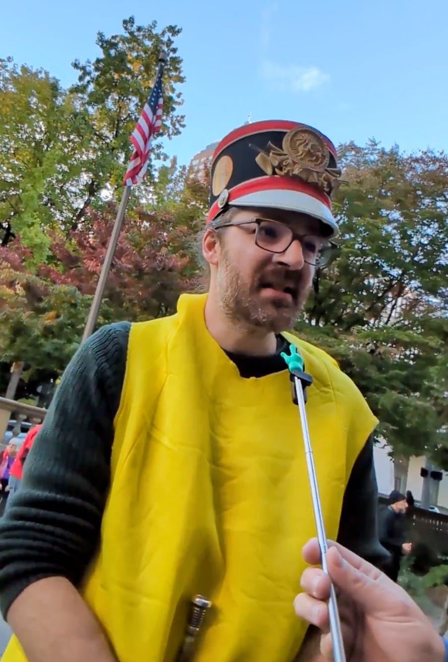 In an instant, the band got caught up in mayhem created by charging federal officers. “We were playing ‘Ghost Busters,’” Thompson recalls. “Suddenly, I see people running by. An officer dive-tackled this person [they were pursuing] into our band and knocked over one of our drummers.” As the violent arrest of this individual was unfolding, the band’s clarinetist, Korol, became an unwitting party to the fracas. “The scuffle was at Ori’s feet,” Thompson says. “She was more or less pinned against the fence.” Then, as Thompson describes it, “another officer came in and they just tacked Ori — and took her into custody as well.”